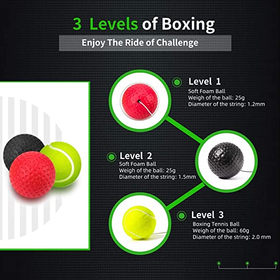 - 3 TRAINING SPEED LEVELS – Our boxing ball is equipped with 3 different elastic strings for 3 training speed levels, not only suitable for beginners, but also for professional boxing trainers. The famous gold medal professional boxer Vasyl Lomachenko and other Thai boxers also adopt this training method. Let’s get started this new and fun sport right now!