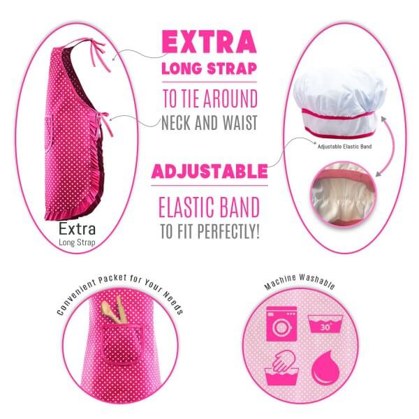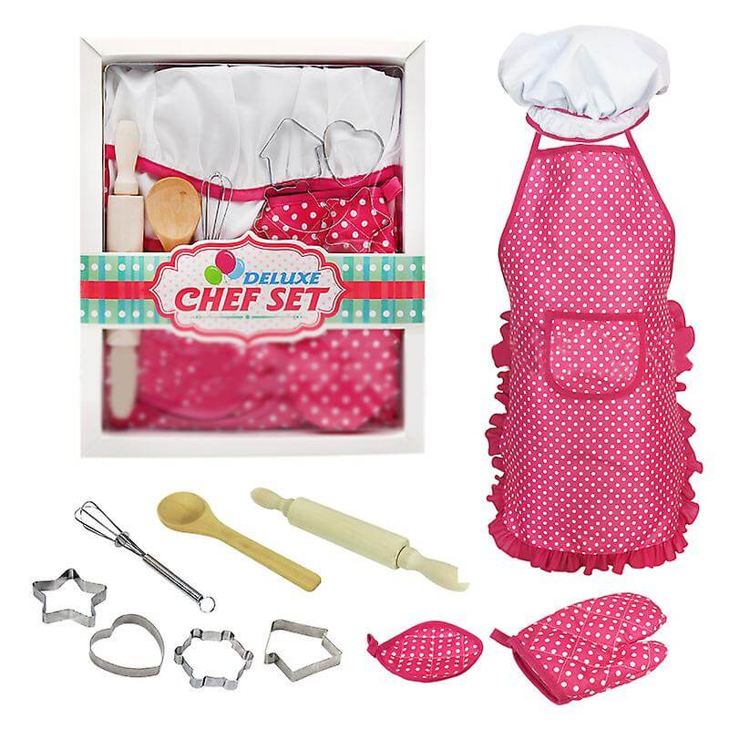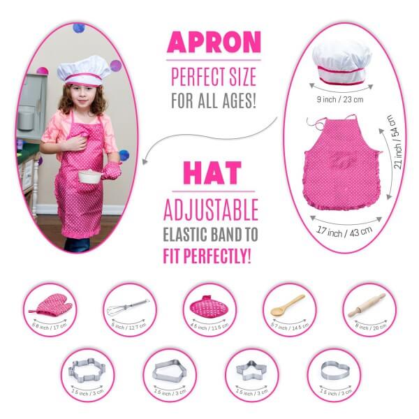 Complete Kids Cooking And Baking Set - 11 Pcs Includes Apron For , Chef Hat, Utensil & Mitt For Toddler Dress Up Chef (Pink)