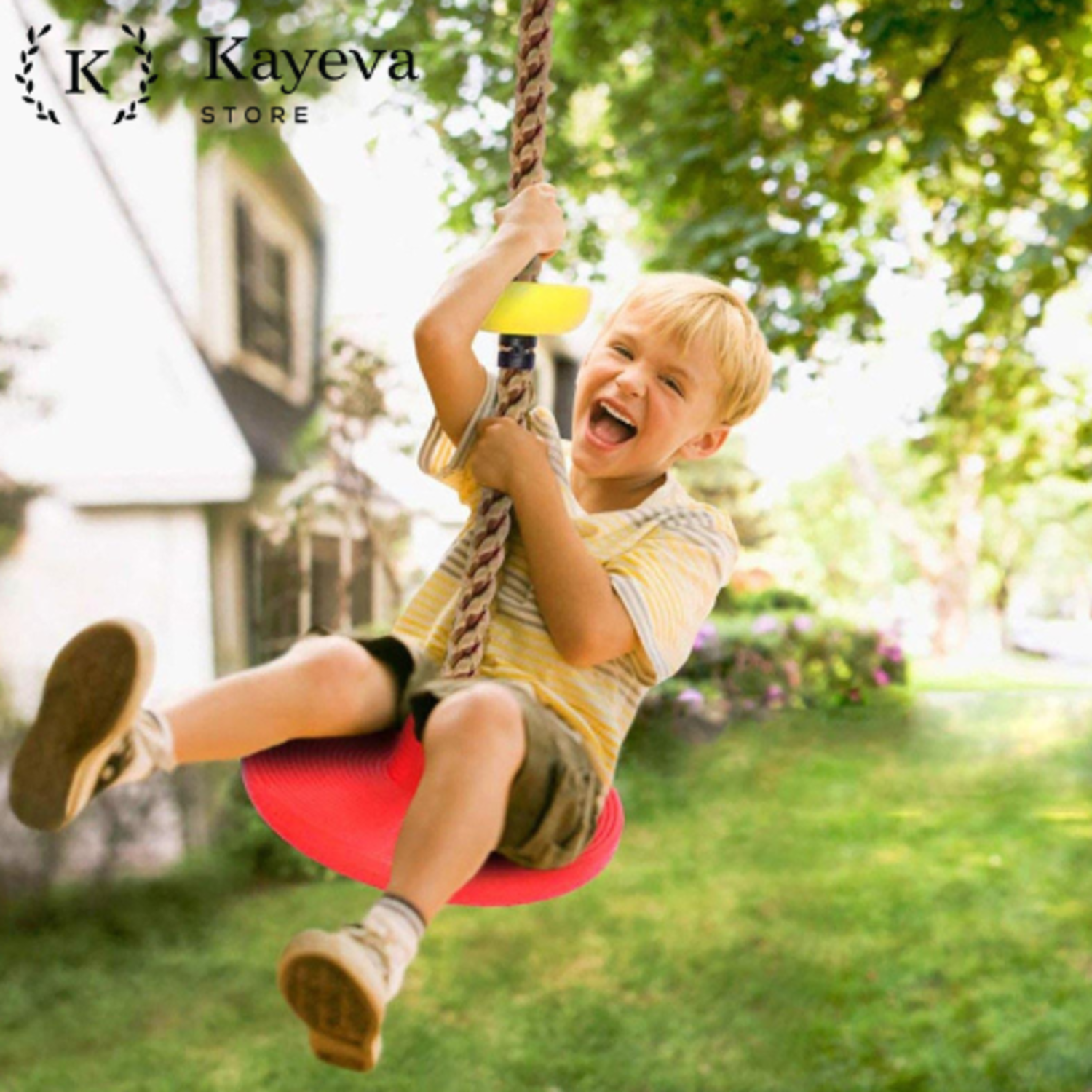 Swing-n-climb is a ready-made swinging device that allows children to exercise their physical skills and self-confidence in a fun way, right in the backyard. It consists of a round disk on the ground and small rubber rings leading up so that children can sit or stand on it to swing and climb up the rope. It supports a healthy body and promotes general well-being to promote the holistic development of a child.